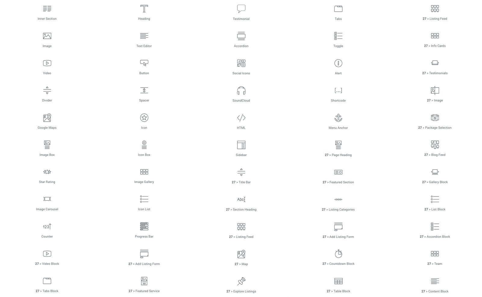 All elementor widgets